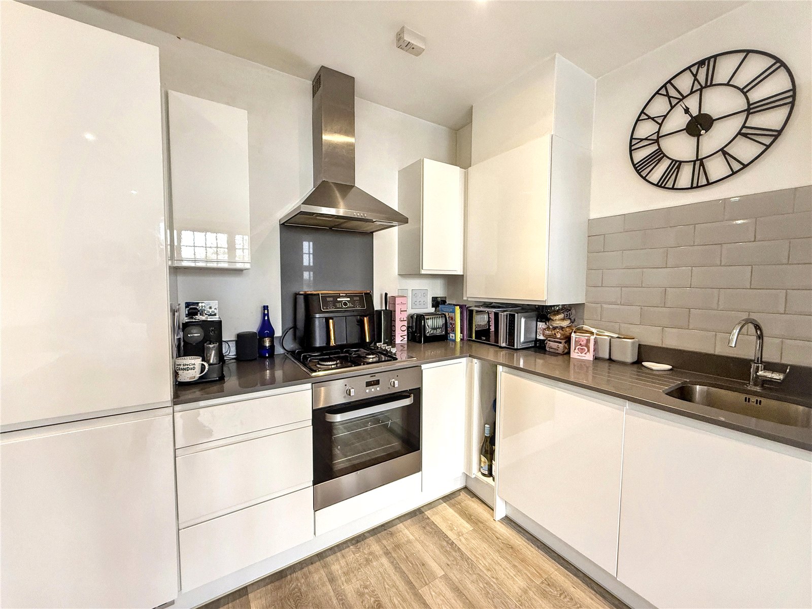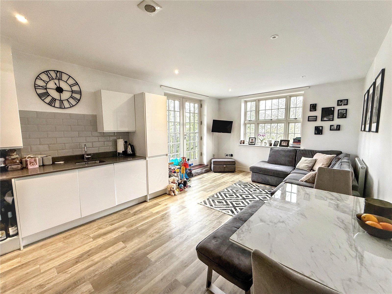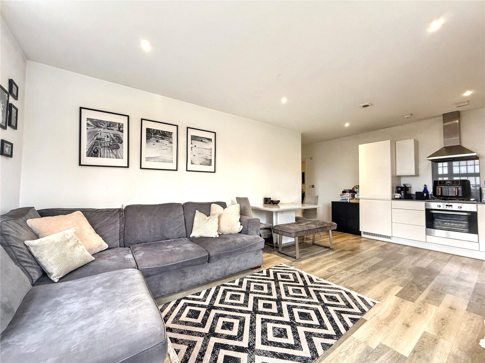Built approximately seven years ago by Linden Homes, this contemporary residence features a generous open plan living and dining area, complemented by a sleek, modern fitted kitchen with integrated appliances and quartz worktops. The principal bedroom is a spacious double with fitted wardrobes, while the second bedroom is also a well proportioned double both served by a stylish three piece family bathroom.