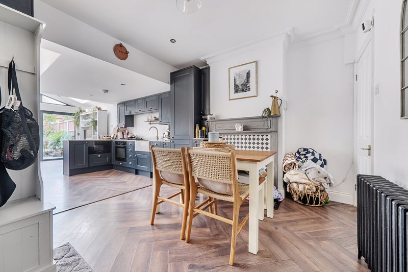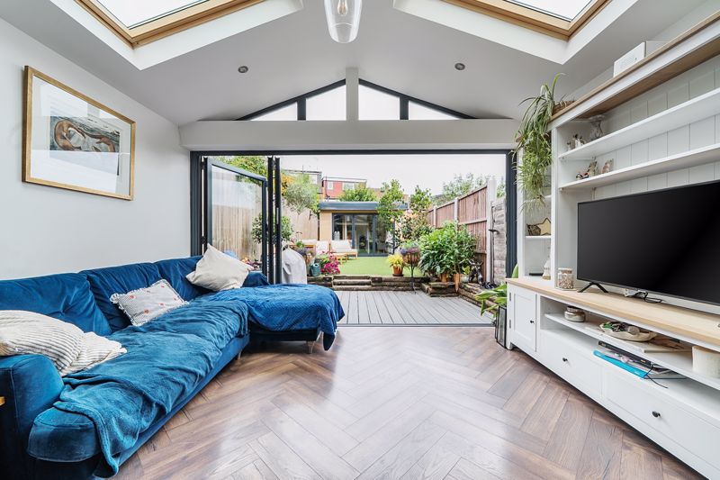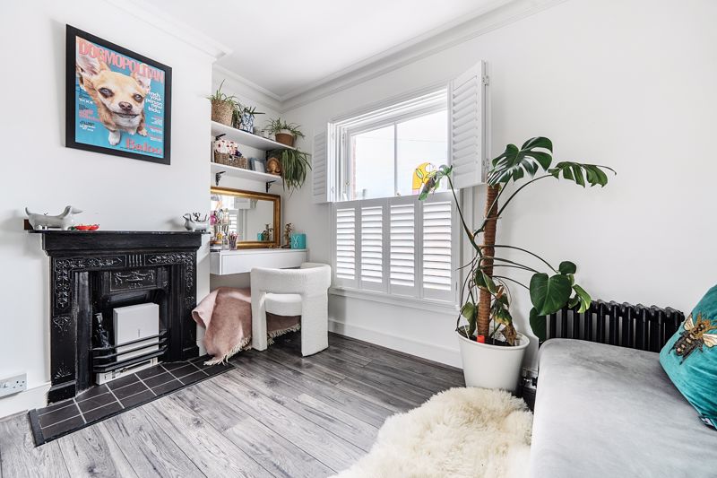 Ground floor accommodation comprises, reception room with wooden shutters & fireplace, extended kitchen diner with bi-fold doors, downstairs W/C, well tended rear garden with newly built outbuilding. Two bedrooms to first floor both with fitted wardrobes and recently renovated three piece bathroom.