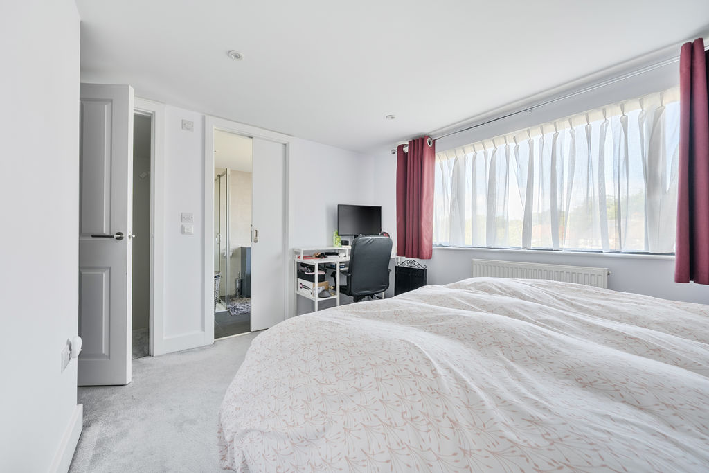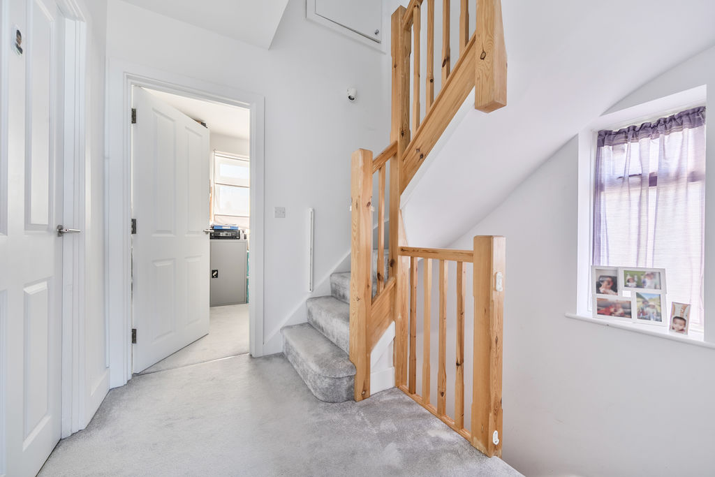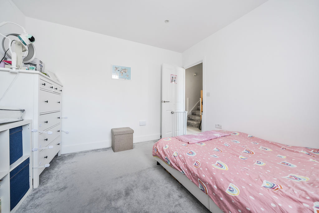 Accommodation is spread across three floors. The top floor hosts a spacious principal bedroom with an underfloor heated en-suite shower room and walk-in wardrobe. The first floor offers three additional bedrooms and a contemporary family bathroom.