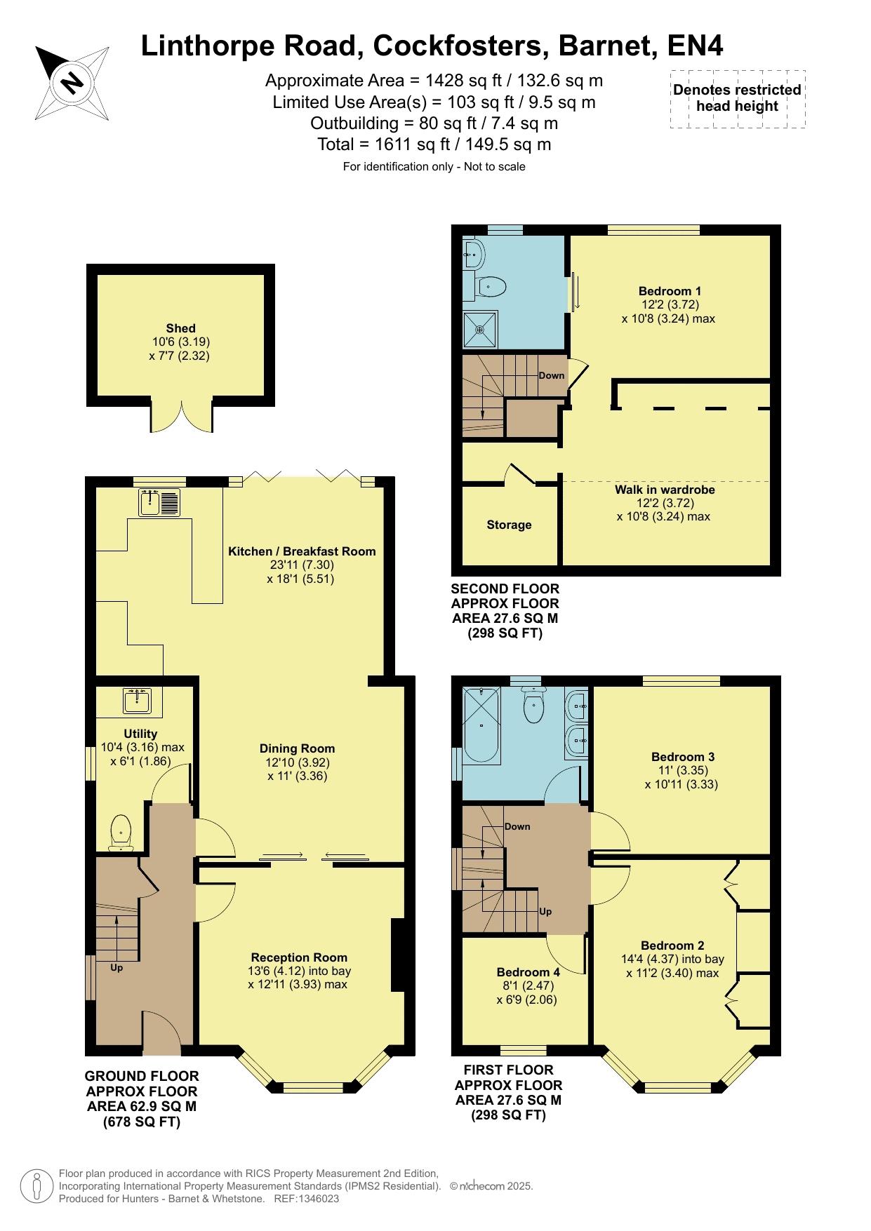 Positioned in a sought-after residential neighbourhood, the property is ideally situated for access to several highly regarded schools, including Trent CofE Primary and Livingstone (both Ofsted-rated Outstanding) Danegrove Primary Schools, East Barnet Secondary, and JCoSS. Nearby to woodlands and meadows of Monken Hadley Common and Jack’s Lake, while the expansive Trent Country Park—with over 400 acres of green space, a café, and a treetop adventure course—is just a mile away.
