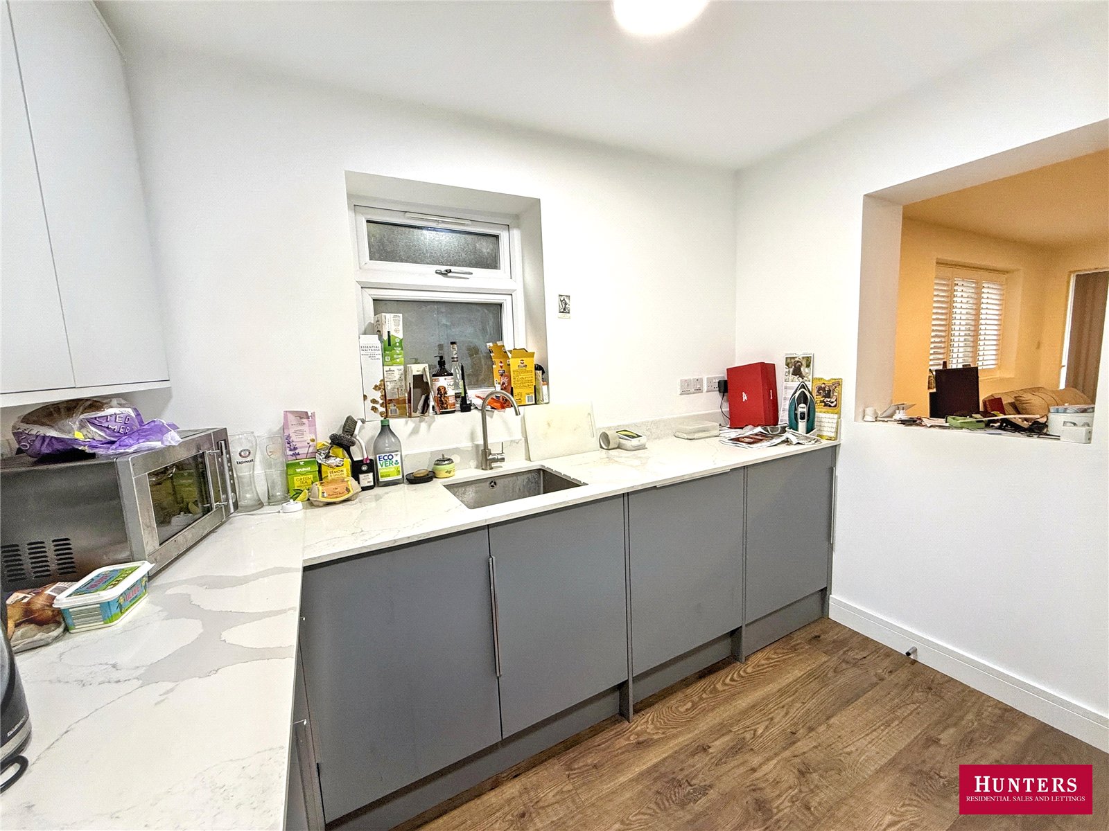 A stylish and well-presented ground floor apartment, newly created in 2023. Features include a spacious lounge with full-height windows and doors opening onto a glazed terrace, maximising natural morning light. The fully fitted kitchen offers integrated appliances and an opening design that encourages sociable interaction with the lounge. The property also benefits from a dual aspect bedroom with east- and south-facing windows fitted with louvred shutters, a contemporary three piece bathroom, and a block-paved driveway providing off street parking.