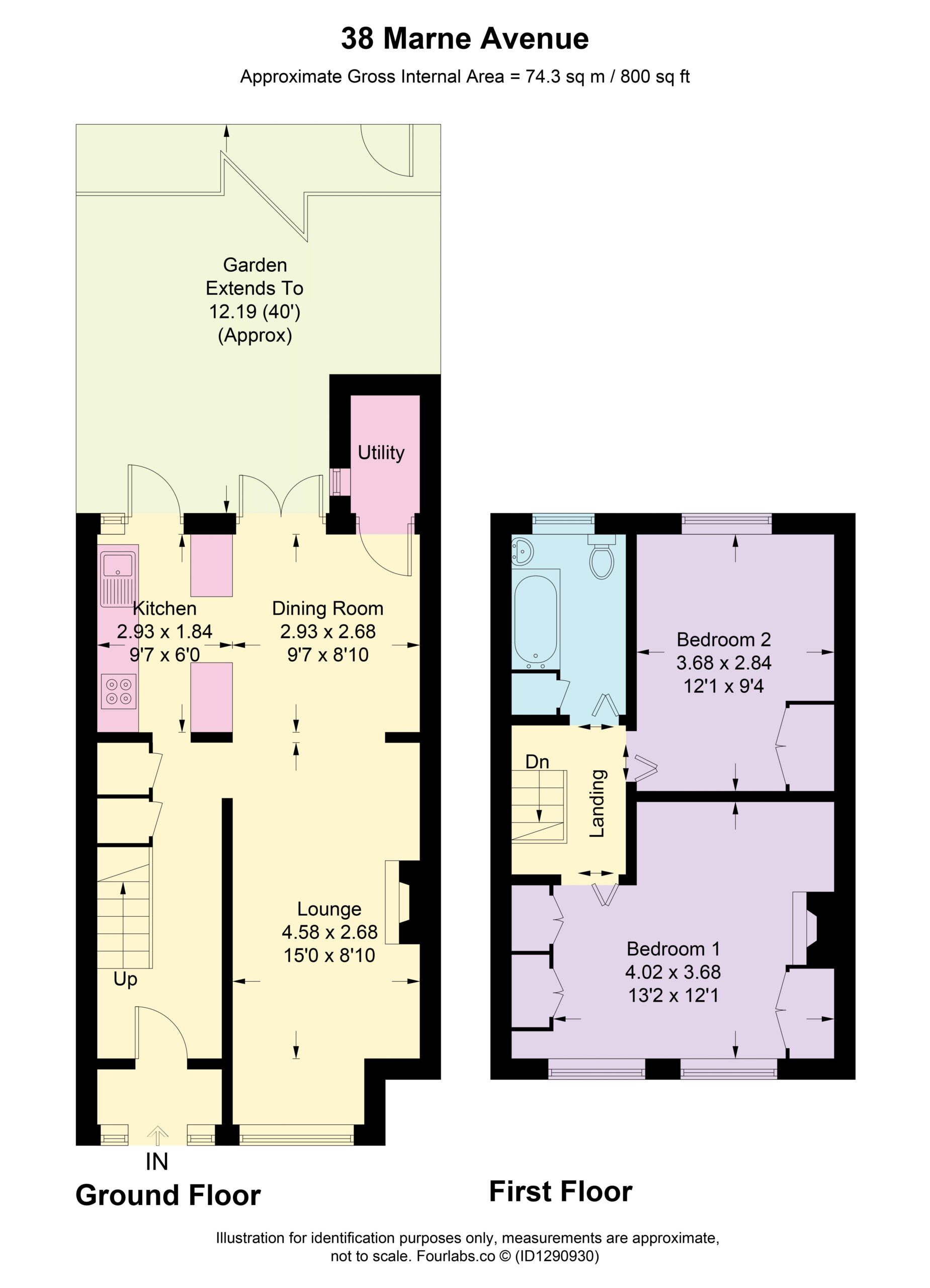 The accommodation comprises an entrance hall, a spacious through lounge with a feature fireplace, a dining area, a fitted kitchen and a utility cupboard. To the first floor are two double bedrooms, both with fitted wardrobes and a three-piece family bathroom. The property further benefits from a 40 ft rear garden and offers excellent potential to extend (subject to planning permission).