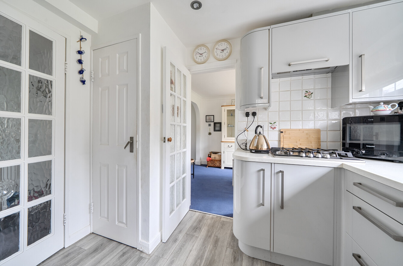 A well-presented two double bedroom semi-detached family home with a 45ft west-facing rear garden, ideally positioned adjacent to open playing fields.