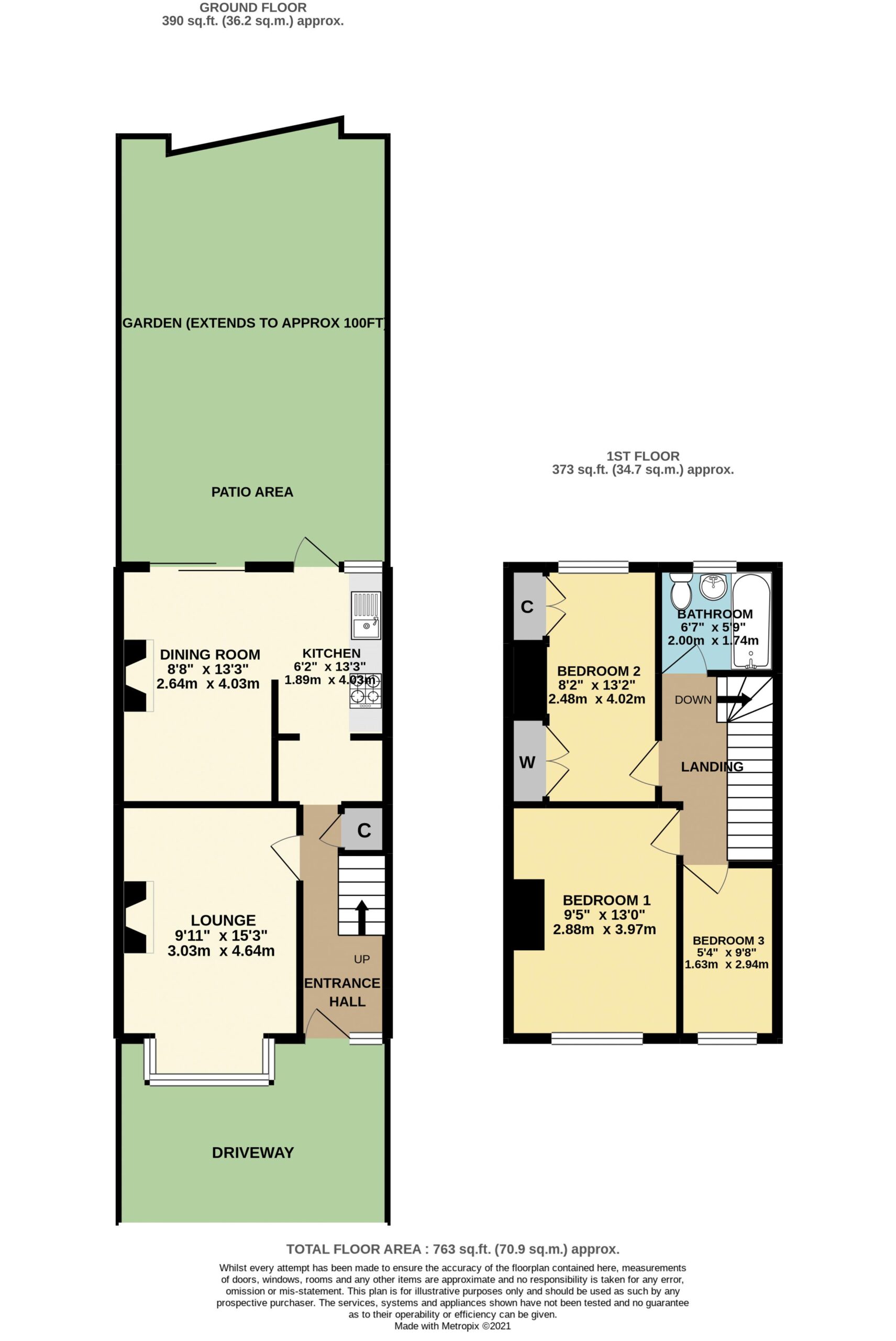 Accommodation comprises, entrance hall, bay fronted reception room with fireplace, open plan kitchen dining room to rear with access to 100ft South West facing garden via sliding doors. Three bedrooms to first floor with three piece family bathroom. Potential to extend to ground floor and loft STPP.