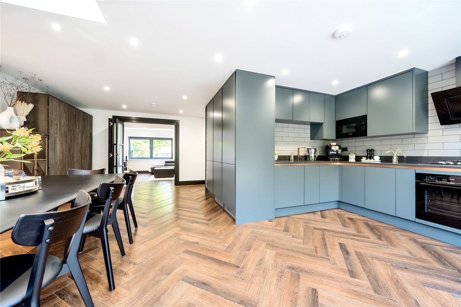 The property offers super modern day family living finished to an exceptional standard with high quality fitments and tastefully decorated. Accommodation is accessed into entrance hall with exposed hard wood illuminated staircase to first floor and Herringbone pattern underfloor heated flooring throughout living accommodation comprising, front aspect reception room and glazed bi-folding doors intercommunicating to dining room, flooded with natural light from its roof lantern and Bi-fold doors to level patio and lawned garden, open plan fully fitted kitchen with quarts work surfaces, ground floor wc and utility room, three good size bedrooms and four piece luxury fitted family bathroom.