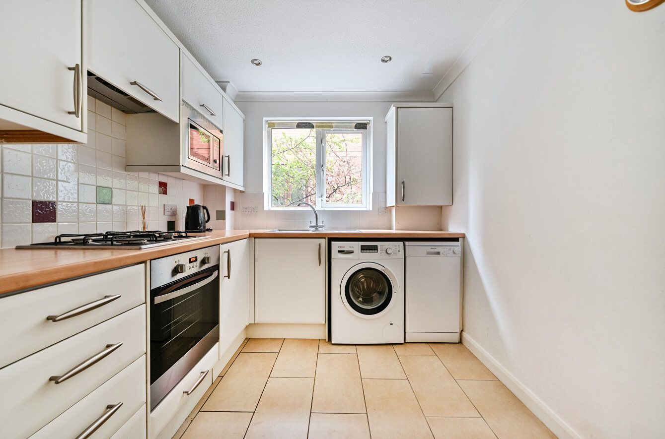 set to the rear of this small development accommodation features a welcoming entrance hall leading to a spacious rear aspect reception room, double bedroom, a separate fitted kitchen breakfast room with integrated appliances, and a modern shower room with a separate WC. The residence benefits from its own private front door, residents' parking, and access to attractive communal gardens.