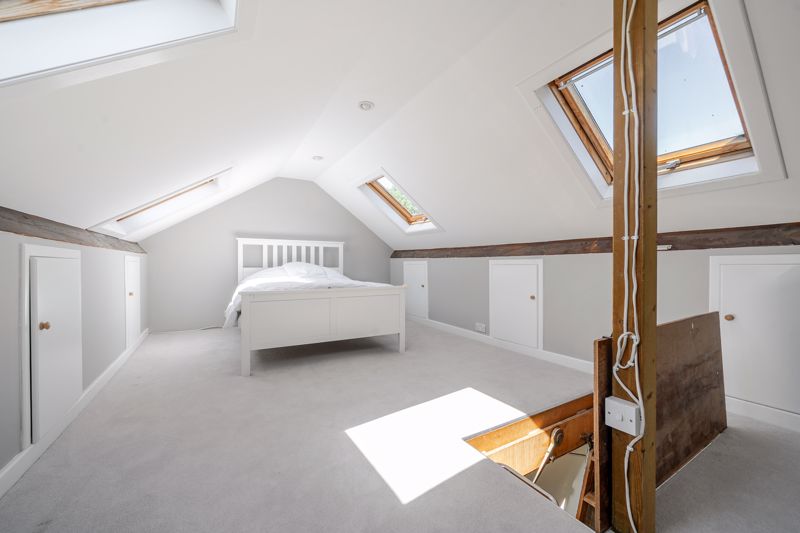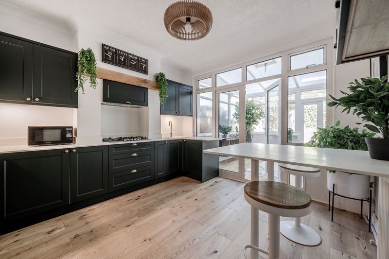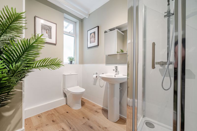 Accommodation comprises, entrance hall, front reception with fireplace, newly fitted kitchen with breakfast bar, leading to conservatory dining room, w/c & shower room, garden with large outbuilding. Three bedrooms to first floor with four piece family bathroom and loft room that has been carpeted (not classed as habitable space) with potential to make it fourth bedroom STPP. Off street to front and large garage and outbuilding to rear of garden.