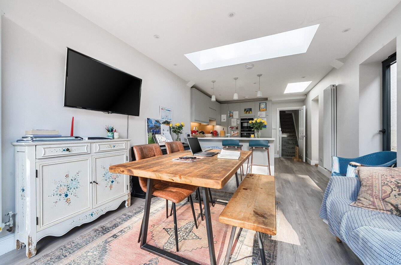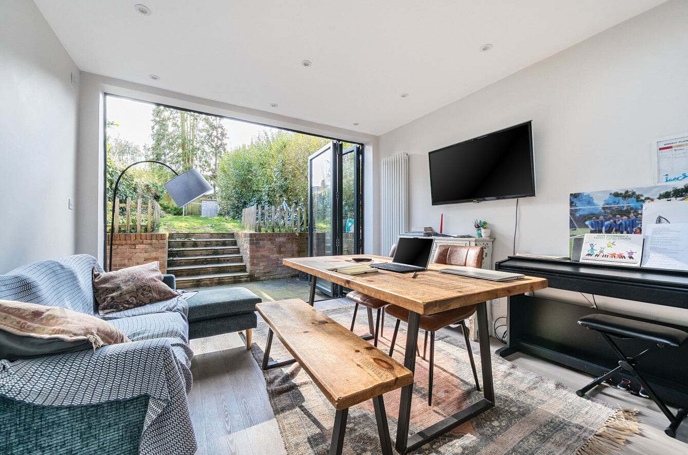 Accommodation is light and spacious comprising of a square bay fronted reception room, rear aspect kitchen breakfast family room incorporating Quartz topped work surfaces and integrated appliances flooded with natural light from two large sky lights & Bi-Fold doors providing access to a landscaped patio and 80ft garden. A master bedroom with en-suite shower, two further bedrooms and four piece family bathroom.