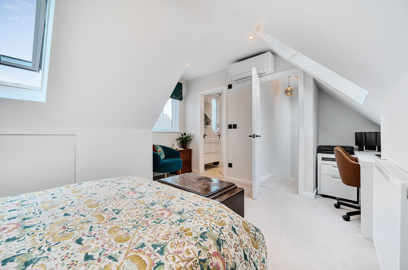 The first floor offers two well proportioned double bedrooms, a contemporary family bathroom, and a stairs leading to the newly converted top floor, which now boasts a stunning master bedroom complete with an en-suite shower room.