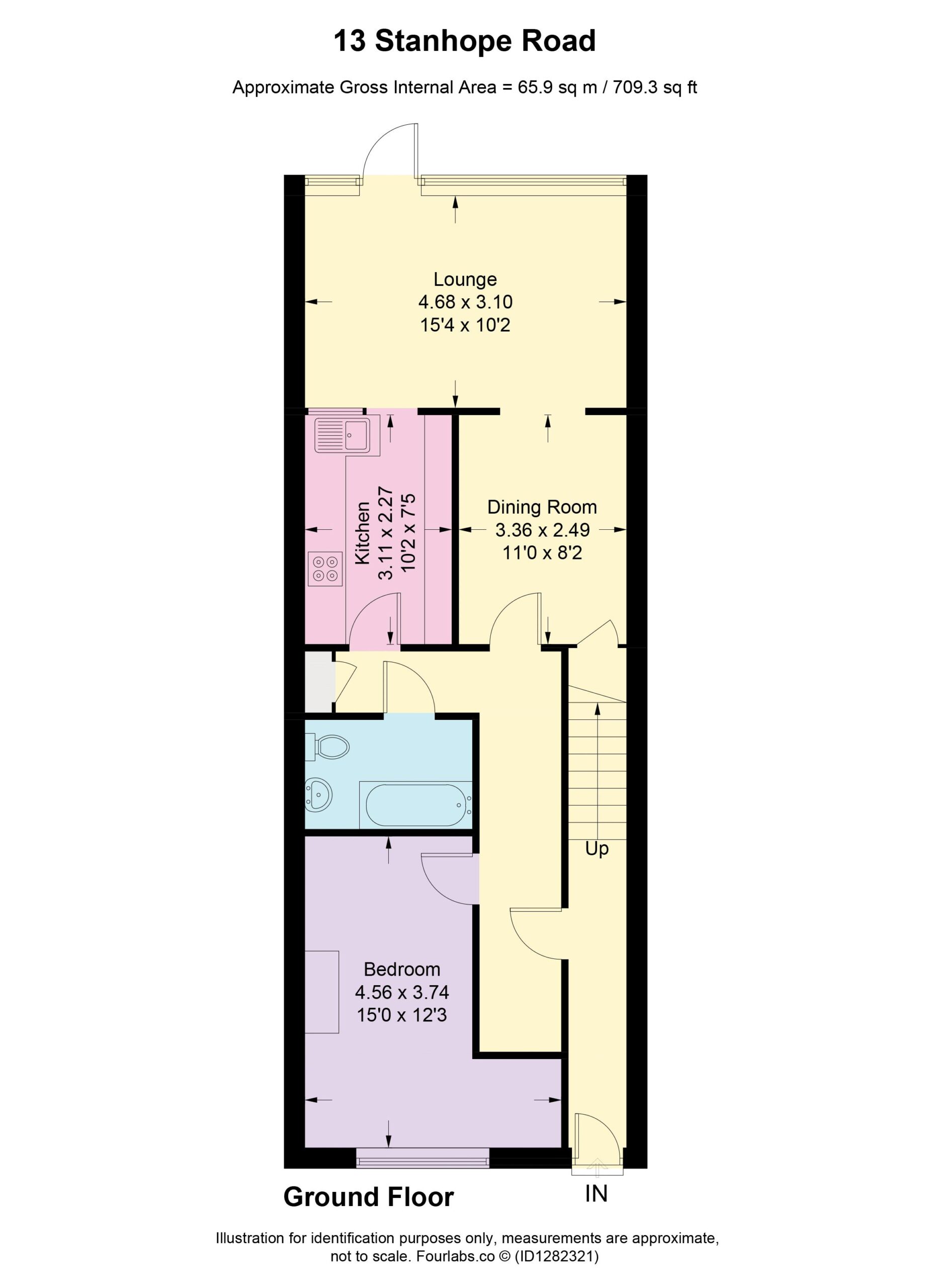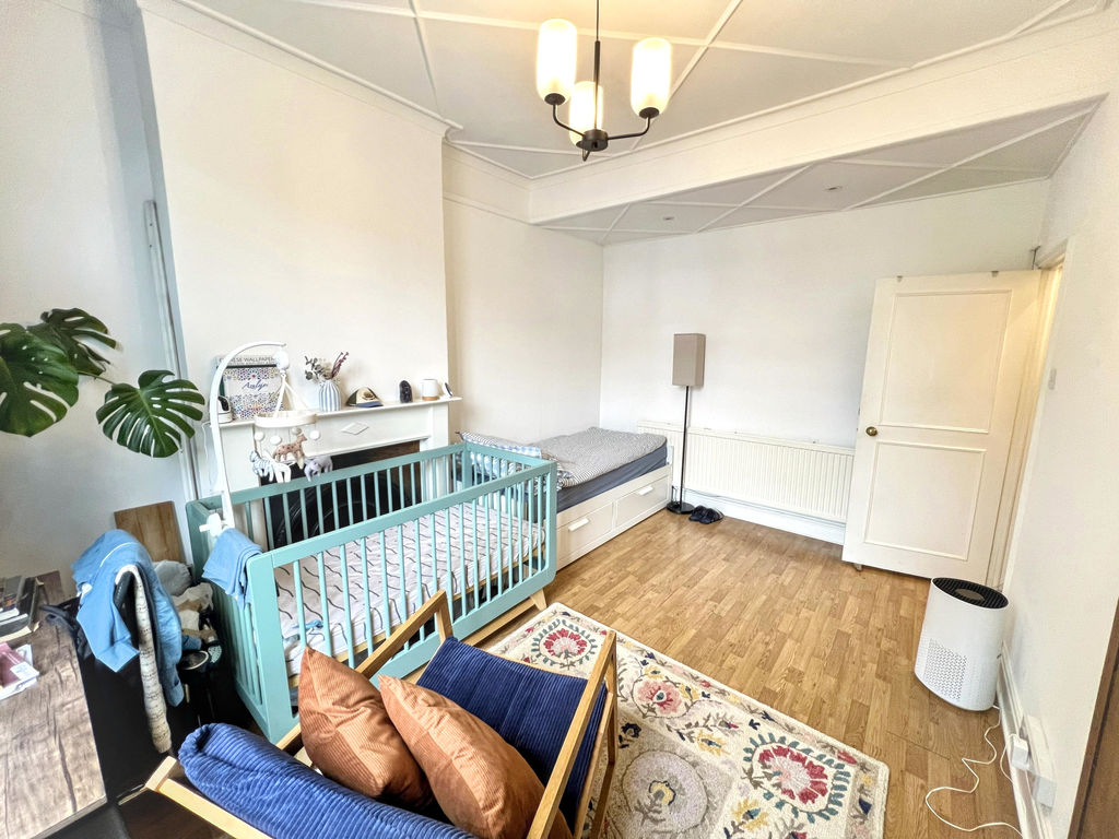 Accommodation comprises entrance hall, main bedroom to front with generous ceiling height, fitted kitchen, reception room leading to garden, dining room/snug area and three piece family bathroom.