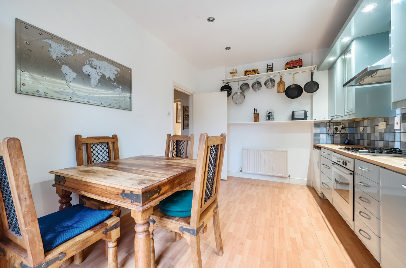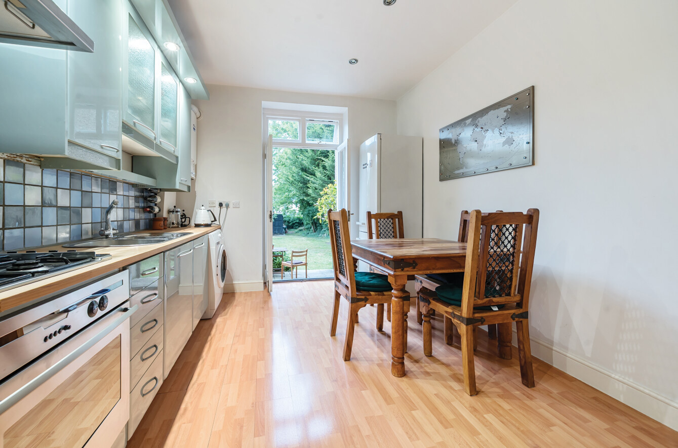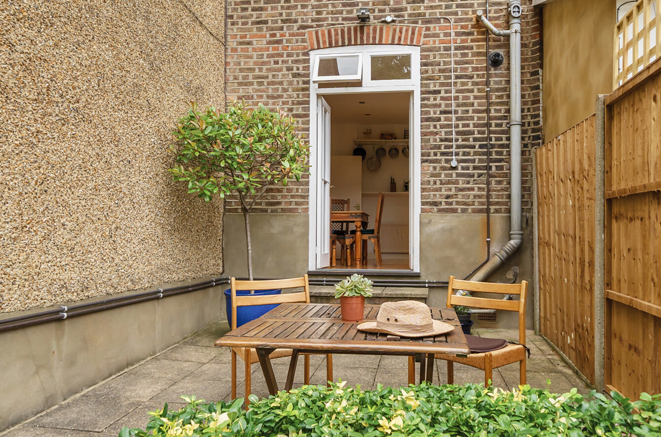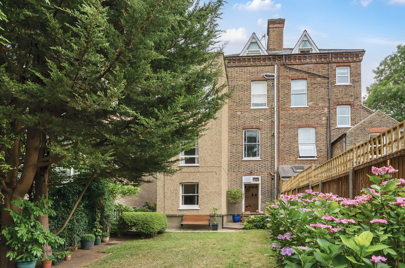Offered with a share of freehold, this beautifully presented ground floor garden flat combines generous living space with charming period features and excellent outdoor amenities, including a private patio, off-street parking, and access to a 120ft communal garden.