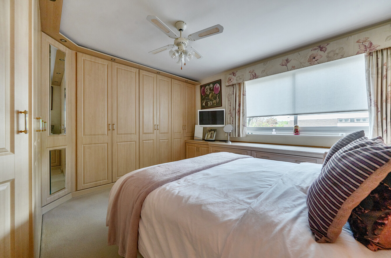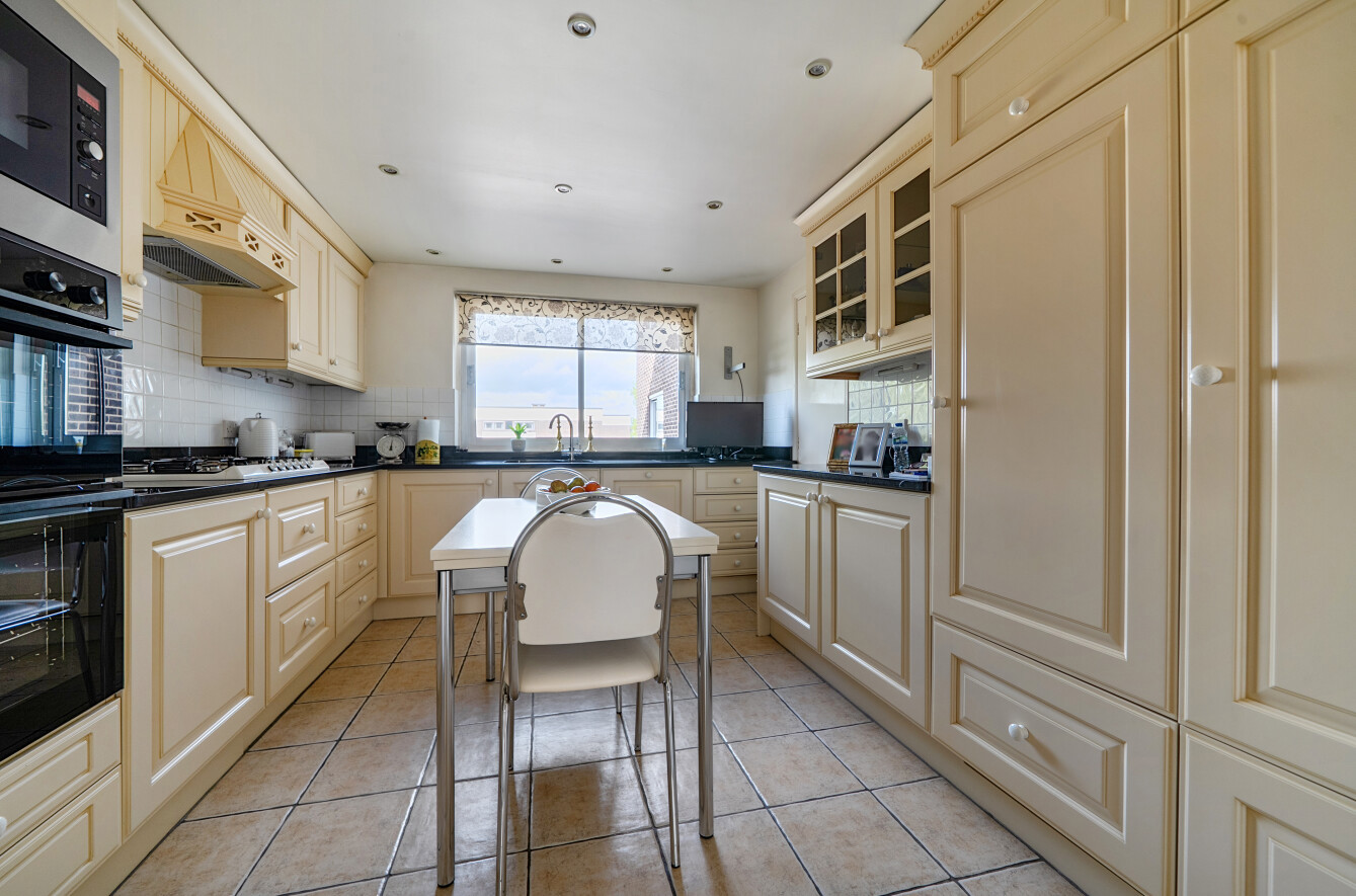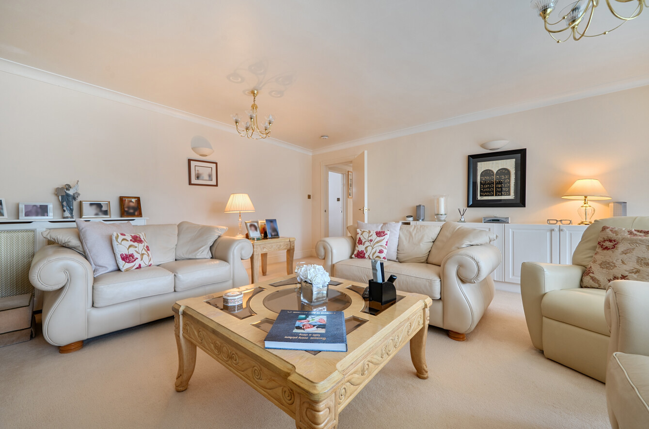The well-maintained development features secure communal intercom entry, with both lift and stair access to the apartment. A large entrance hall with ample storage and a coat cupboard provides access to all rooms. The front-aspect lounge opens onto the balcony, while the separate, fully fitted kitchen is finished with elegant granite work surfaces.