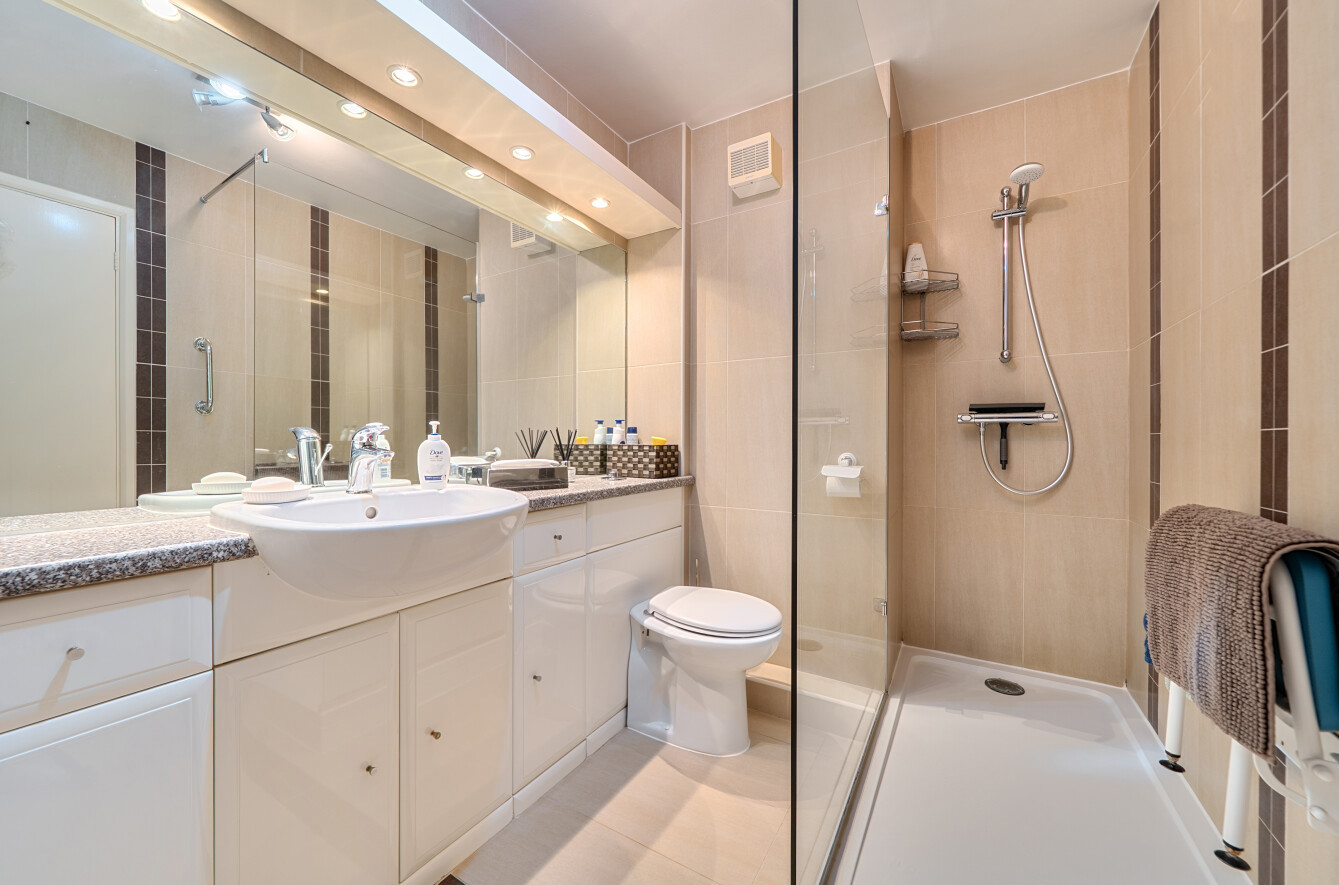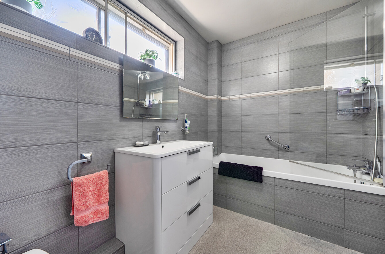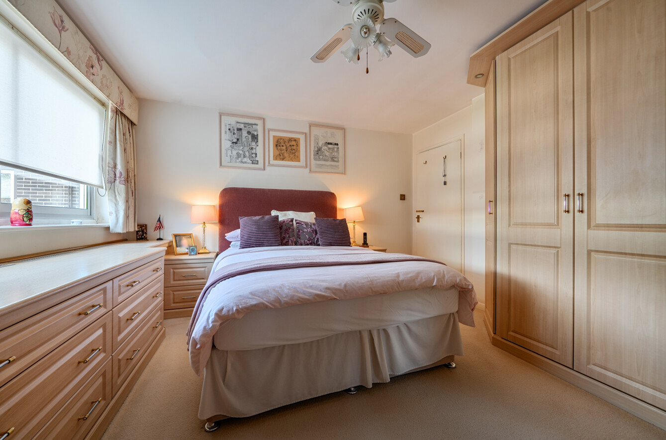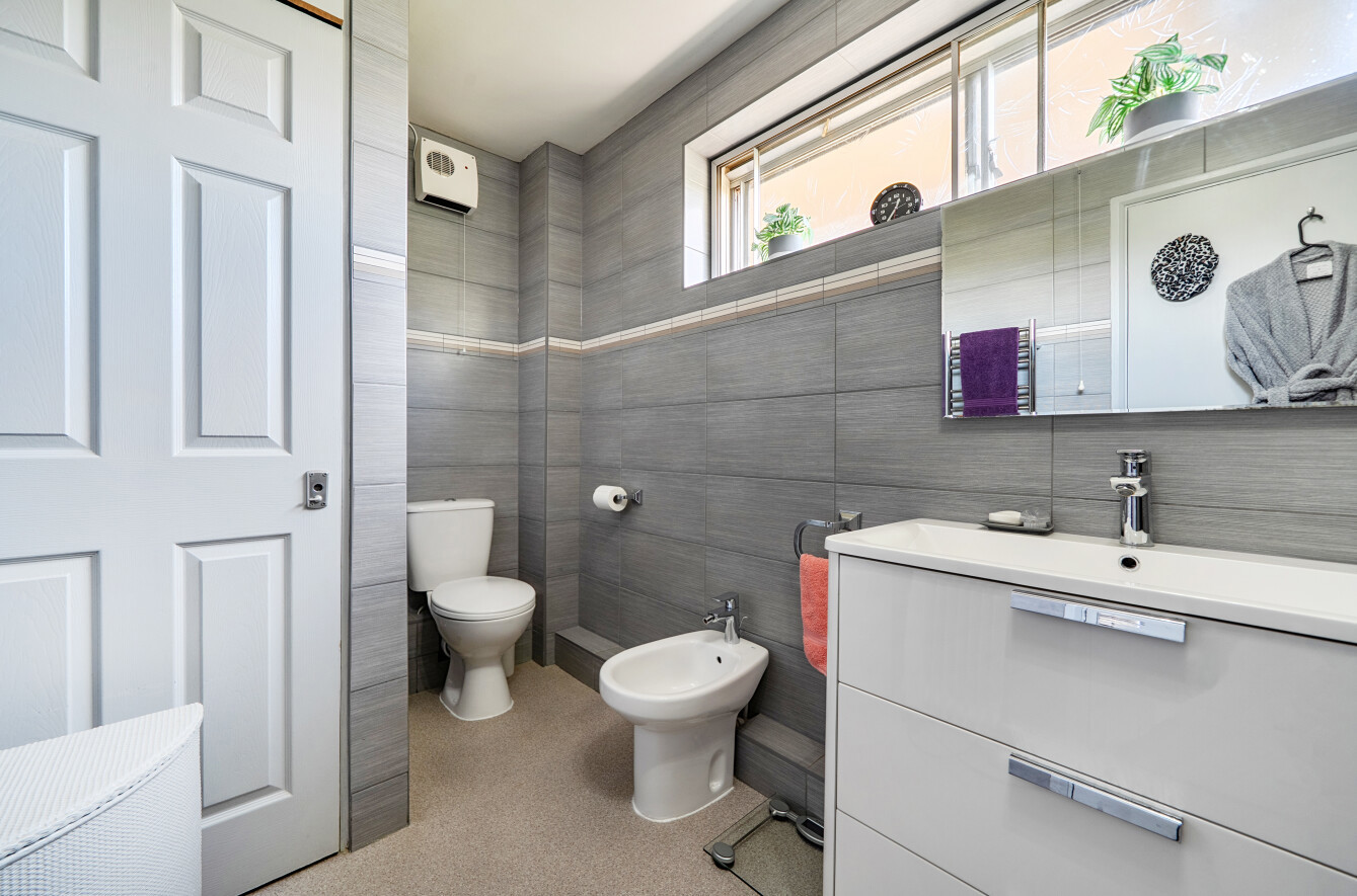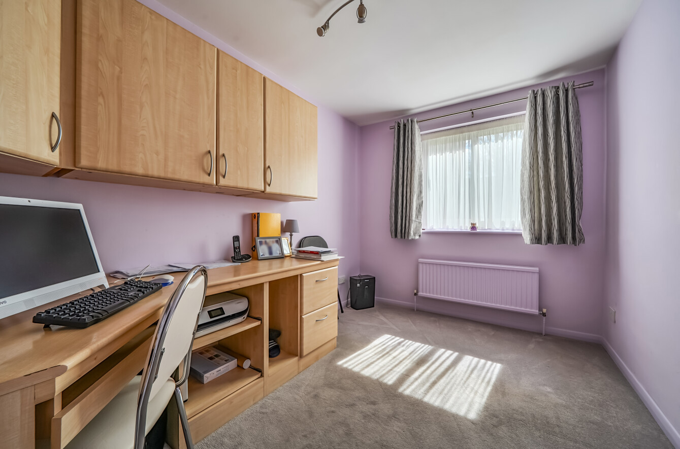 All three bedrooms include fitted wardrobes, with the principal bedroom enjoying discreet access to a stylish four-piece en-suite bathroom. The additional bedrooms are equally well-proportioned, with one currently arranged as a home office, and are served by a contemporary, high-quality shower room.