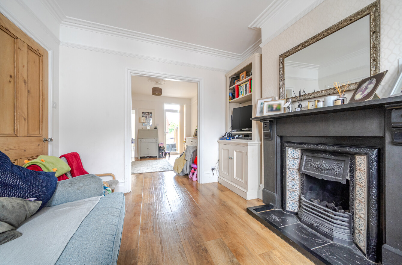 The spacious, light-filled layout includes a bay-fronted living room with a feature fireplace, a separate dining room, an extended kitchen/breakfast room, overlooking the patio and garden, ideal for family meals and entertaining, a convenient ground floor WC, three bedrooms, and a family bathroom.