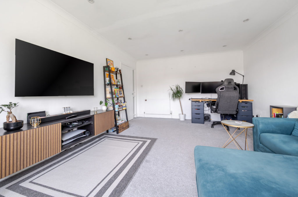A bright and airy 16'6 x 12'4 front-aspect reception room. Separate 12'3 x 6'8 modern fitted kitchen with integrated appliances, generous 12'4 x 12'0 double bedroom with a stylish three-piece bathroom.