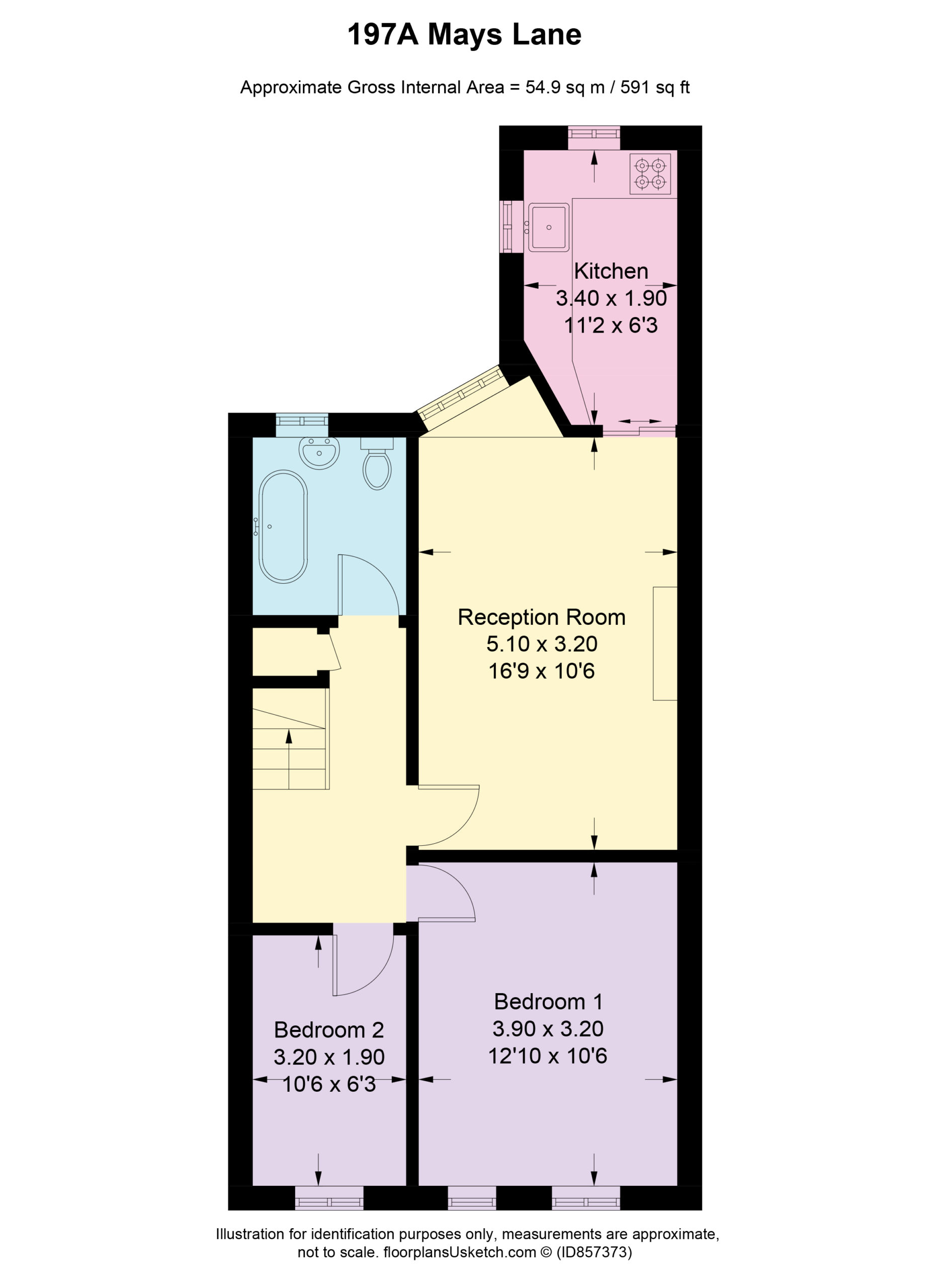 Accommodation comes with gas central heating and UPVC double glazing, accessed via own private entrance at ground floor level with stairs within to first floor landing and comprising a rear aspect reception room and kitchen, two bedrooms to front and three piece bathroom.