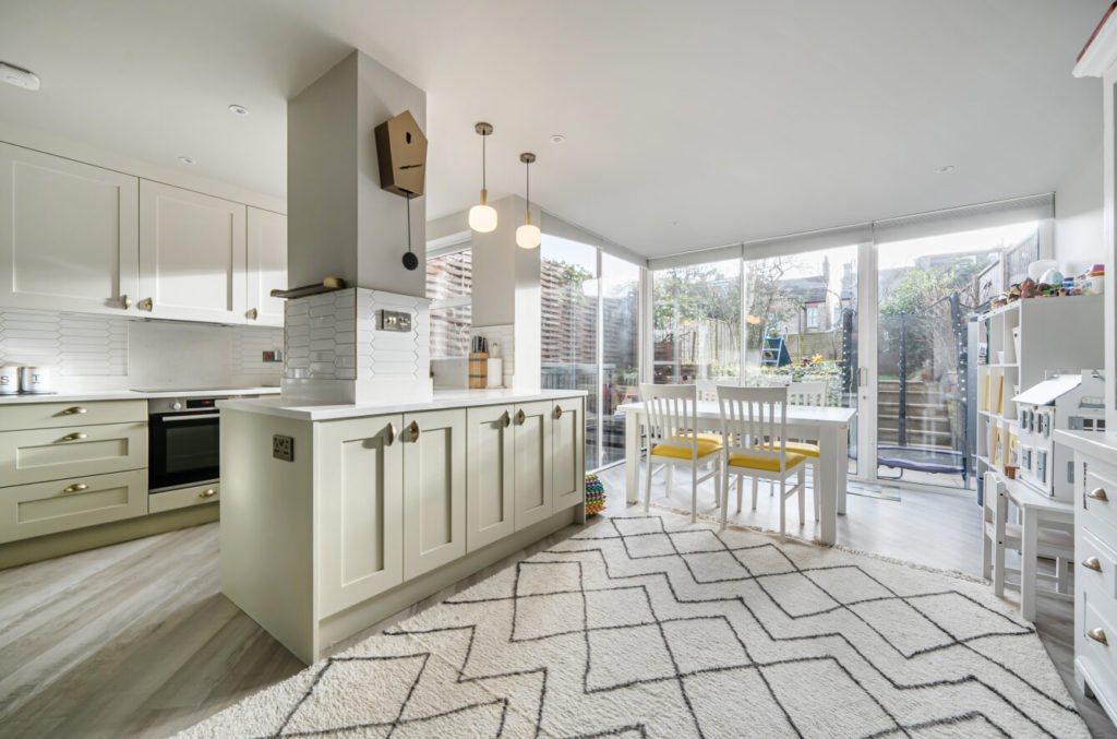 This beautifully presented home can be accessed either via the upper ground floor entrance or from the lower ground floor patio, which leads into an entrance hall featuring built in coat and shoe cupboards with seating. The living accommodation is thoughtfully arranged over two floors, with a kitchen/breakfast room enjoying a southerly aspect, large windows, and doors opening onto a 60ft south-east-facing garden. This space flows into an open plan family room, creating an ideal setting for modern family life. The lower ground floor also benefits from a useful shower room. A relaxing upper ground floor lounge provides additional living space, perfect for retreating or entertaining.