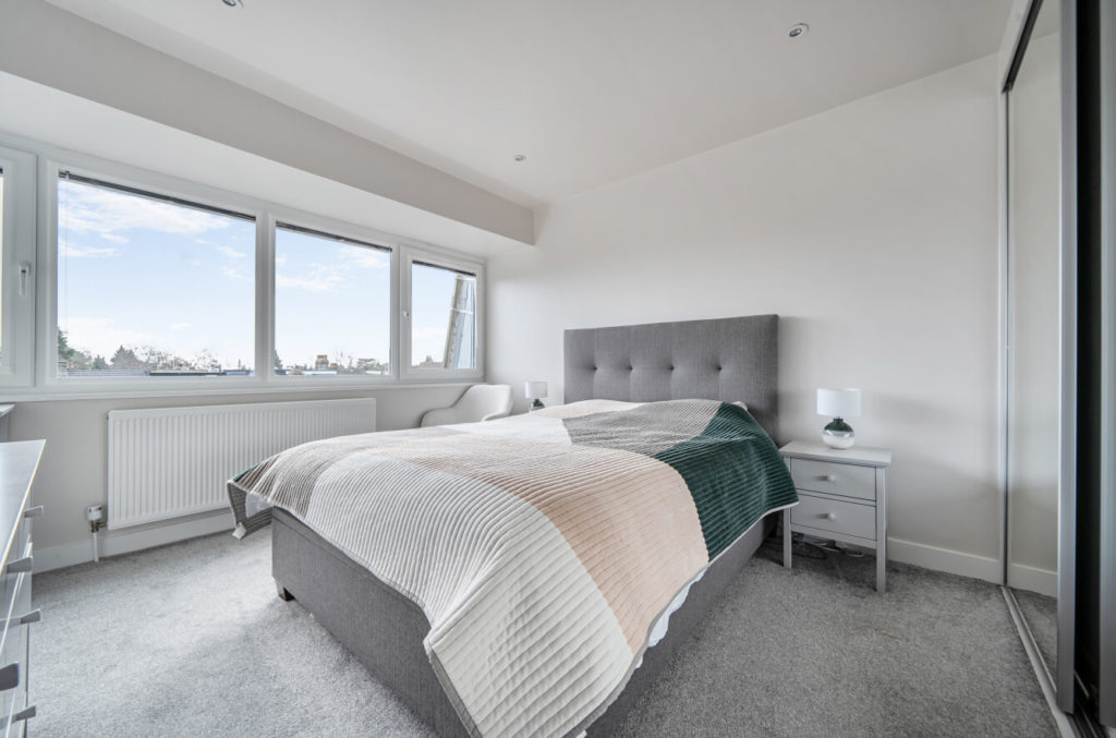 To the first floor are three well proportioned bedrooms and a family bathroom, while the top floor hosts a spacious principal bedroom featuring a full width span of windows, fitted wardrobes, and an en-suite shower room.