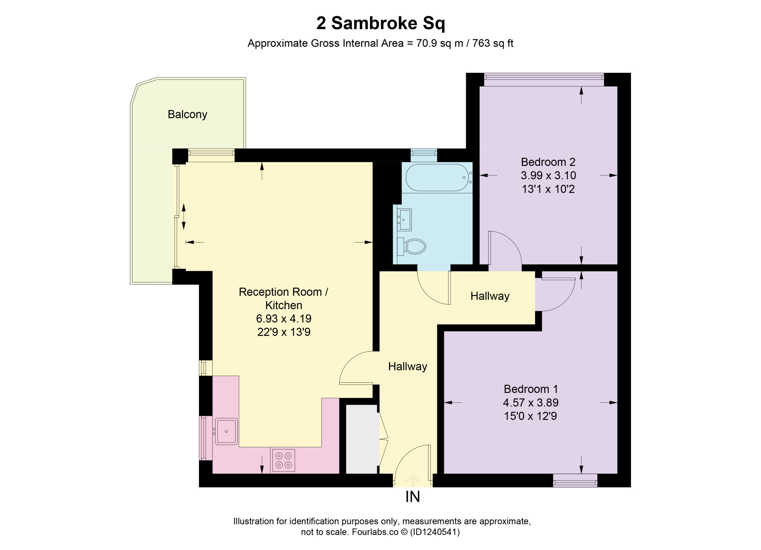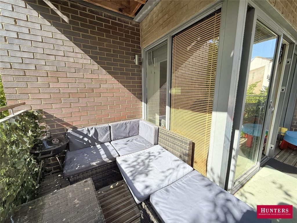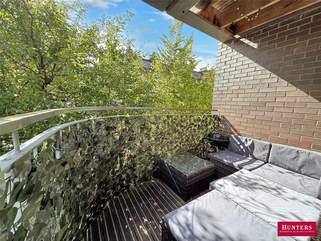 The accommodation comprises a bright and spacious reception room with a private balcony, a fully fitted kitchen, two generously sized double bedrooms, and a contemporary three-piece bathroom.