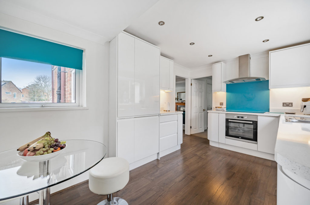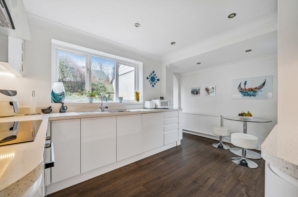 An extremely well presented, light and spacious three bedroom detached family house with drive providing off street parking for three to four vehicles and landscaped planted front and rear gardens.